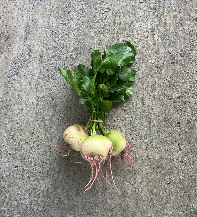 El Rábano Red Meat es un rábano de invierno, verde y blanco con tonos rosados por fuera y rosado por dentro. También se le conoce como Rábano Sandía por que al partirlo parece una mini sandía. Los rábanos de invierno, a diferencia de los de primavera y los más típicos y conocidos en Chile, son rábanos más grandes que tienen más estructura y no son tan aguados como los otros. Estos son increíbles para encurtir, o rallar en ensalada pero también los puedes saltear o asar. Sin las hojas pueden durar un largo tiempo en el refrigerador, sobre todo si los guardas en un tupper sellado o incluso en agua. Pero recuerda que al igual que otras raíces, si los guardas en agua, debes cambiarle el agua con frecuencia para que no se pudran y esta forma de guardar raíces es para corto a mediano plazo.